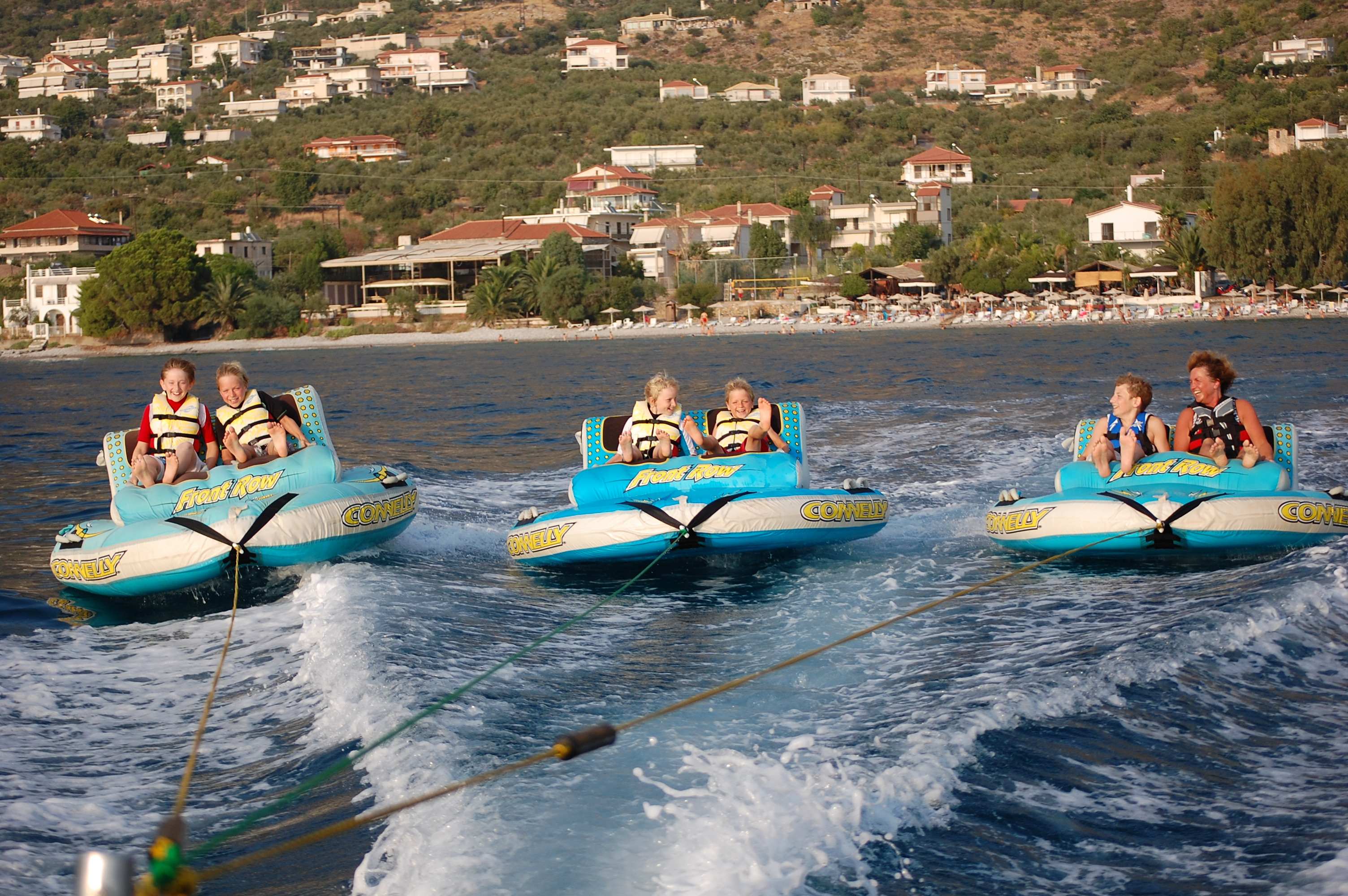 Tubes in recent years have gained fanatical fans in our country. This trend for group sea rides has developed the size and hydrodynamics. We have many kinds that each offer different levels of adrenaline for all marine conditions. The inflatable traction is made by an experienced driver who is properly trained to safely conduct the game. The boat, after being removed from the specially configured channel, develops different speeds to provide riders with emotions. The tubes in our area can be run at all times of the day. Life jacket and good mood are essential!